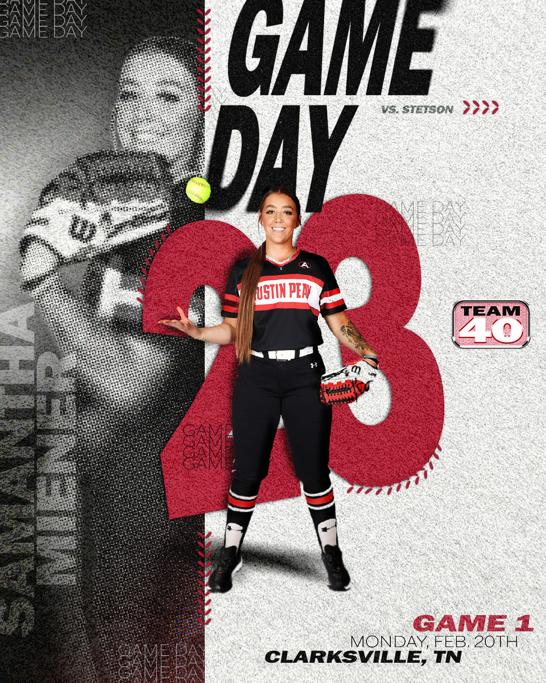 The 2024-2025 Austin Peay Softball Graphic Designs were headed by myself and co-created with Alex Allard. The goal was to separate the Softball program from the other sports while remaining true to Austin Peay's brand identity. I initially created a collection Game day templates that could be repurposed throughout the season along with lineup and score graphics. Series specific, Invitational and other program specific graphics were additionally created throughout the season using Photoshop and After Effects.